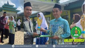 Hulu Sungai Selatan (MTsN 10 Hulu Sungai Selatan) – Prestasi membanggakan kembali diraih oleh Madrasah Tsanawiyah Negeri 10 Hulu Sungai Selatan melalui dua siswanya, Habibah dan Ahmad Syailillah, yang berhasil menorehkan juara pada ajang Olimpiade Madrasah Indonesia (OMI) tingkat Kabupaten Hulu Sungai Selatan. Sebagai bentuk apresiasi, keduanya menerima piagam penghargaan dan trofi kemenangan yang diserahkan secara langsung pada kegiatan pelepasan kontingen Kabupaten Hulu Sungai Selatan untuk mengikuti OMI tingkat Provinsi Kalimantan Selatan, Rabu (01/10/2025).