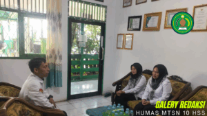 Hulu Sungai Selatan (MTsN 10 HSS) — Dalam rangka optimalisasi proses pembelajaran dan pemenuhan beban kerja guru sesuai ketentuan, Wakil Kepala Madrasah Bidang Kurikulum MTsN 10 Hulu Sungai Selatan, Anderi, S.Si., Gr., M.A., mengadakan kegiatan koordinasi terkait linieritas mata pelajaran bersama para guru yang telah lulus sertifikasi untuk mata pelajaran rumpun Pendidikan Agama Islam. Kegiatan ini berlangsung pada Senin (21/07/2025) di ruang tamu kepala madrasah.